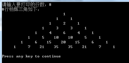 while(n<=0||n>=8){ /*控制打印的行数不要太大,过大会造成显示不规范*/