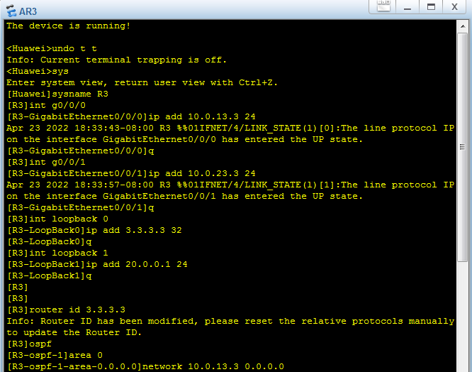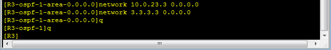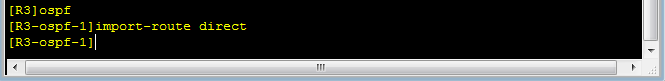 在R3上配置路由引入,采用引入直连路由的方式将Loopback 1接口所在网段引入到OSPF进程中,用它来模拟企业外部网络: