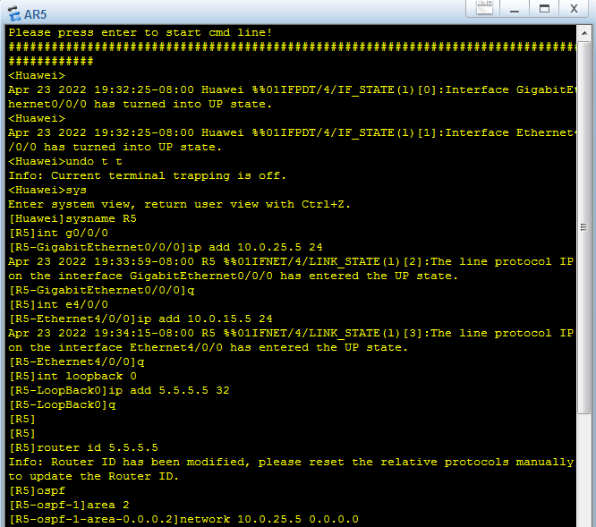 R4, R5 都要用E接口,否则不会形成邻接关系.......