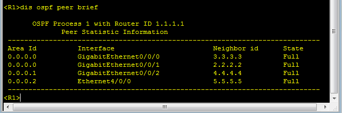 我们也可以用命令 display ospf 1 routing 来只查看 OSPF路由表的信息: