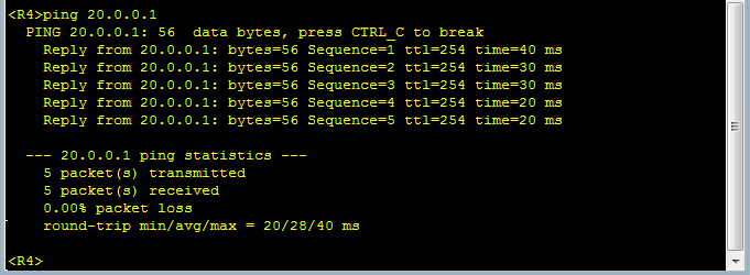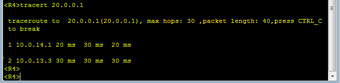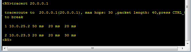 在R4,R5上使用tracert 命令验证去往外网20.0.0.1的路径 :