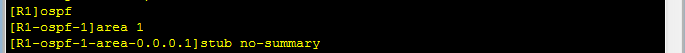 配置Totally Stub区域时,只需在Stub命令之后添加 no-summary选项,且只需ABR上进行配置。