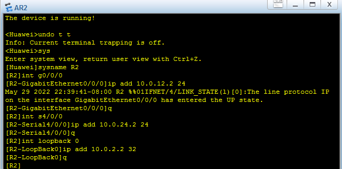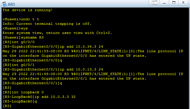 可以看到,去往10.0.3.3/32的开销值已经变为100,而去往10.0.2.2/32网络开销值没有改变。