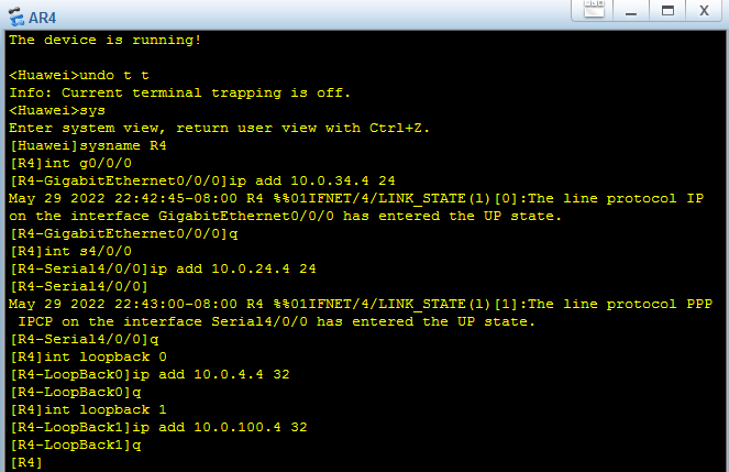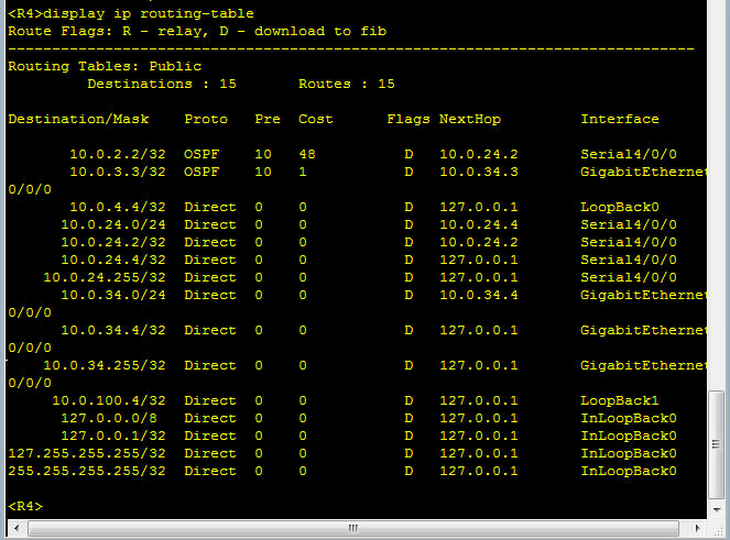 在R4上使用tracert命令验证从10.0.100.4/32去往10.0.100.1/32的报文所经过的路径 :