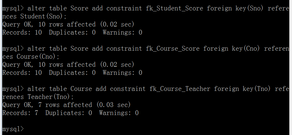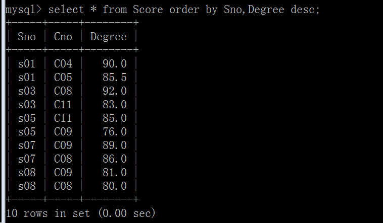 (8)以Cno升序、Degree降序查询Score表的所有记录: