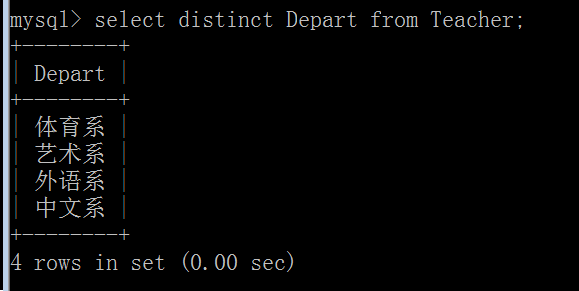 (2)查询教师所在的单位即不重复的Depart列: