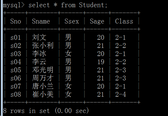 (3)查询Student表的所有记录: