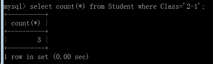 (9)查询2-1班的学生人数: