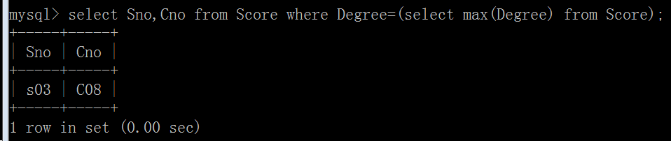 (10)查询Score表中的最高分的学生学号和课程号: