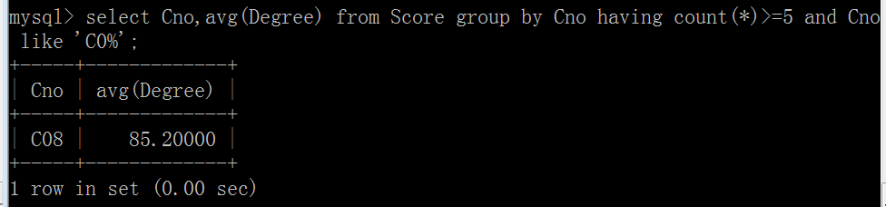 (12)查询Score表中至少有5名学生选修的并以C0开头的课程的平均分数: