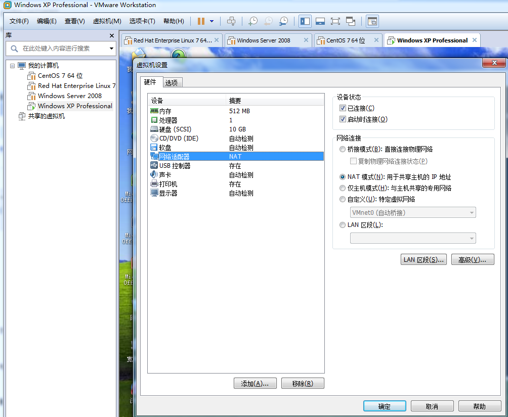 虚拟机必须能ping通服务器,如果不能 ping通,则进行如下操作:选择NAT模式