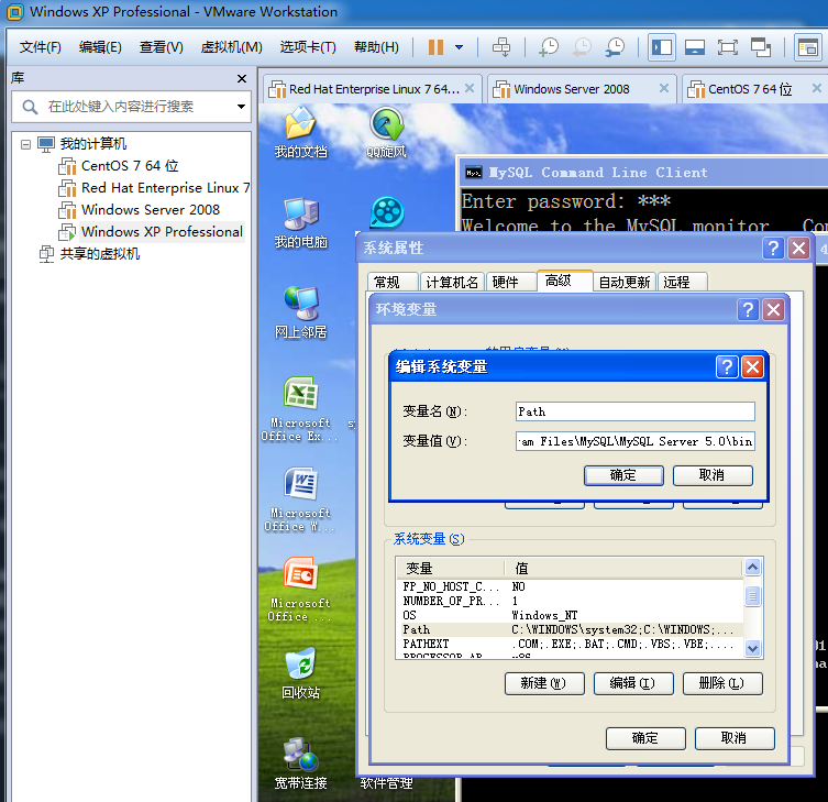 如果在虚拟机的DOS下输入mysql无效,那是mysql的路径没有添加到操作系统的环境变量中,添加环境变量如下:
