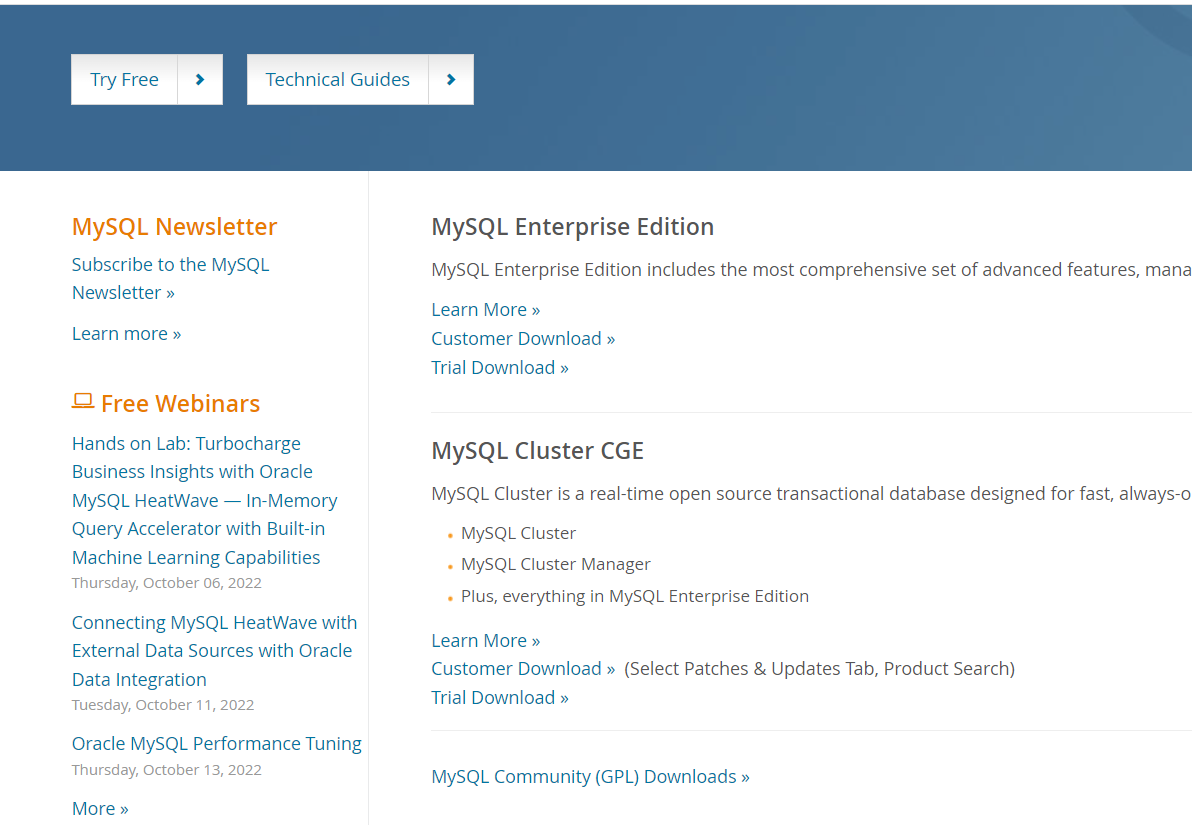 选择最上面的 “MySQL Community Downloads”选项, 此时进行下载