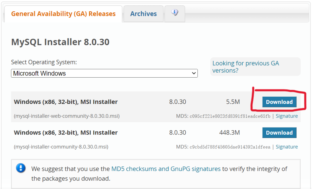 选择最下面的 “MySQL Community(GPL) Downloads>>” 选项, 进入下一页