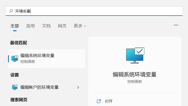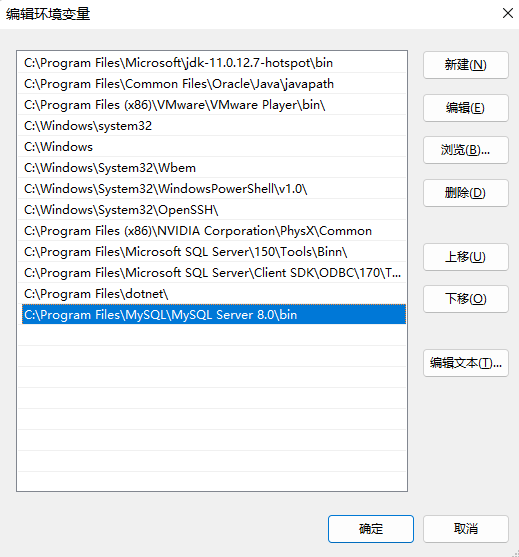C:\Program Files\MySQL\MySQL Server 8.0\bin) - 开始界面搜索环境变量,打开选项