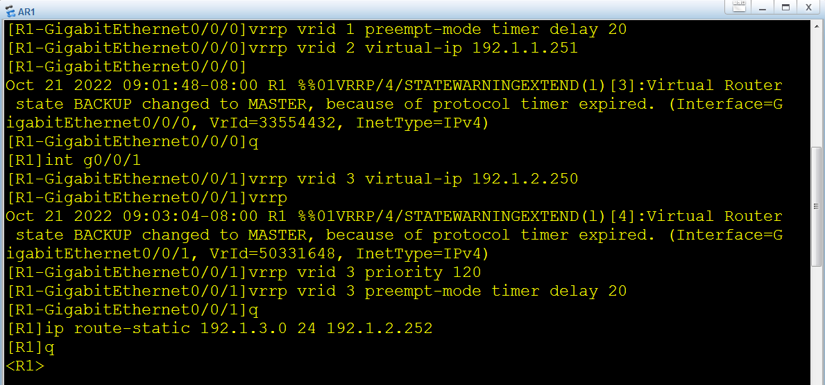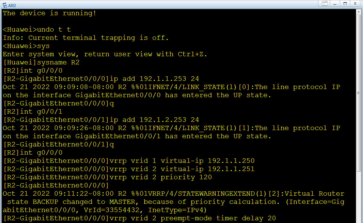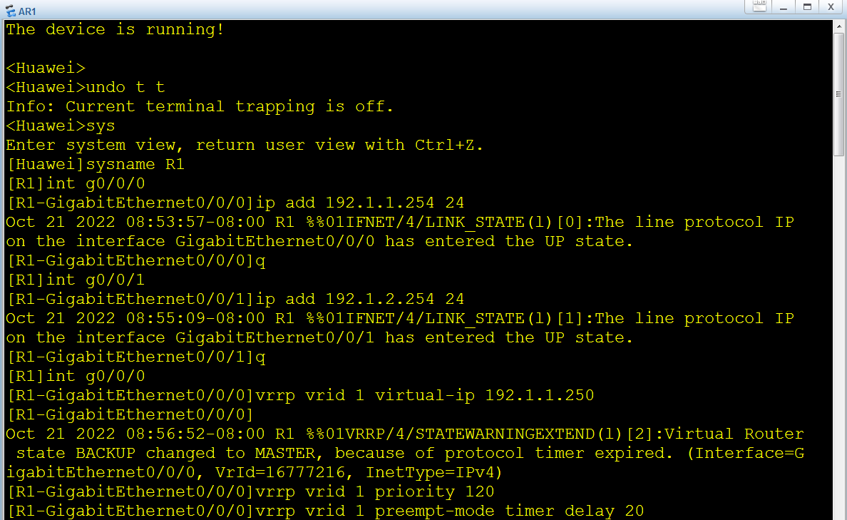 华为VRRP-虚拟路由冗余协议实验