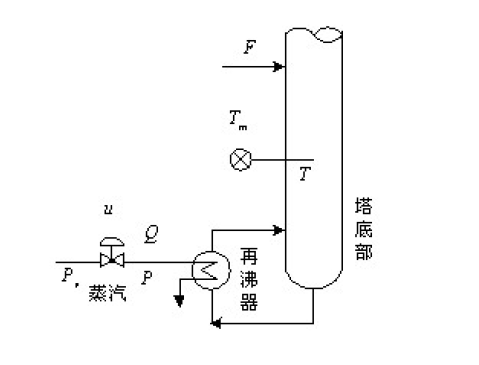某精馏塔提馏段如图示,要求控制提馏段温度T,操作变量为蒸汽流量Q ,图中u为调节阀门开度,Pv 为整齐调节阀阀前压力(蒸汽回路的主要干扰),Pv为蒸汽调节阀阀后压力,F为进料量(温度回路的主要干扰)Tm 为T 的测量值