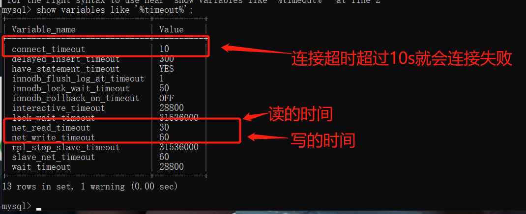 客户端连接MySQL的服务需要有时间限制 客户端读取MySQL服务的数据 客户端把数据写到MySQL的服务