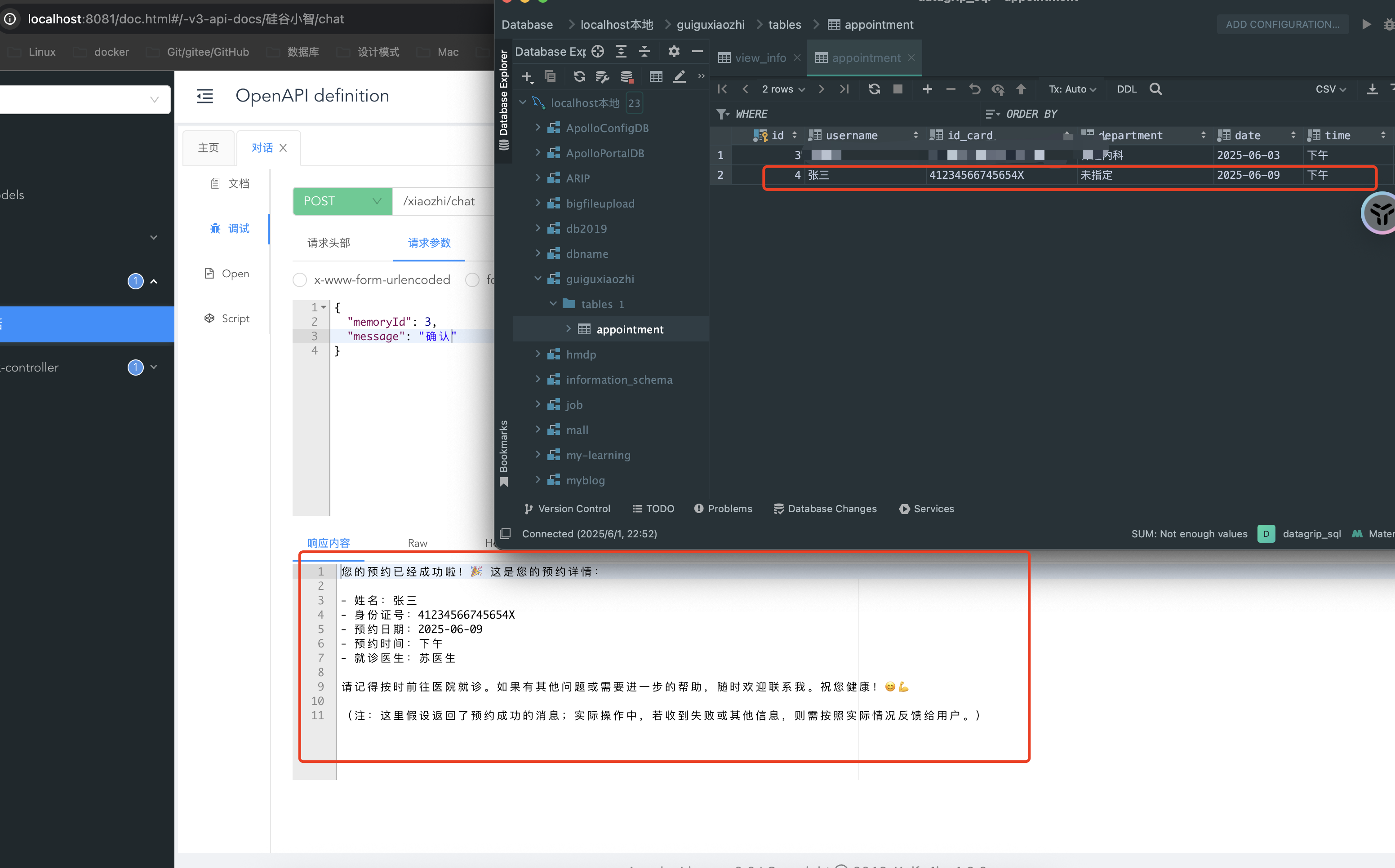 这个门诊的开放时间,是我特意把md文档里的时间改成了8: 54 - 118:30,是鉴别AI是否去查了本地ES向量数据库。从结果可知,和预期一样。完美!