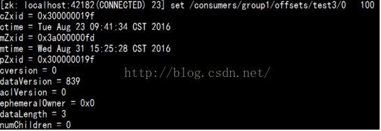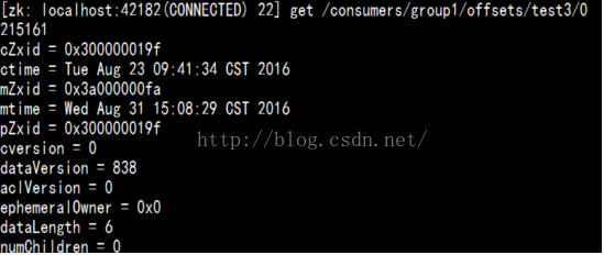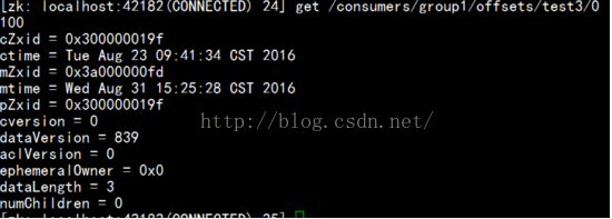 [zk: localhost:42182(CONNECTED) 22] get /consumers/group1/offsets/test3/0