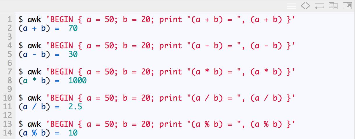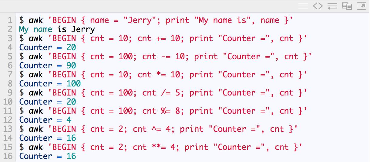 与其它编程语言一样,AWK也提供了大量的操作符。