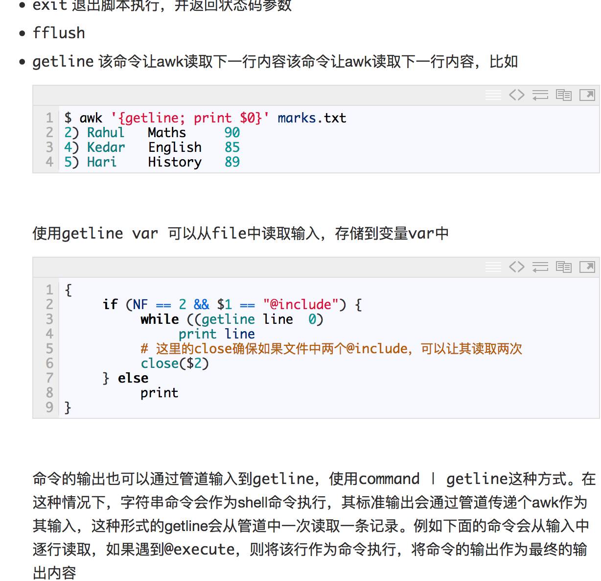 在AWK中执行shell命令有两种方式