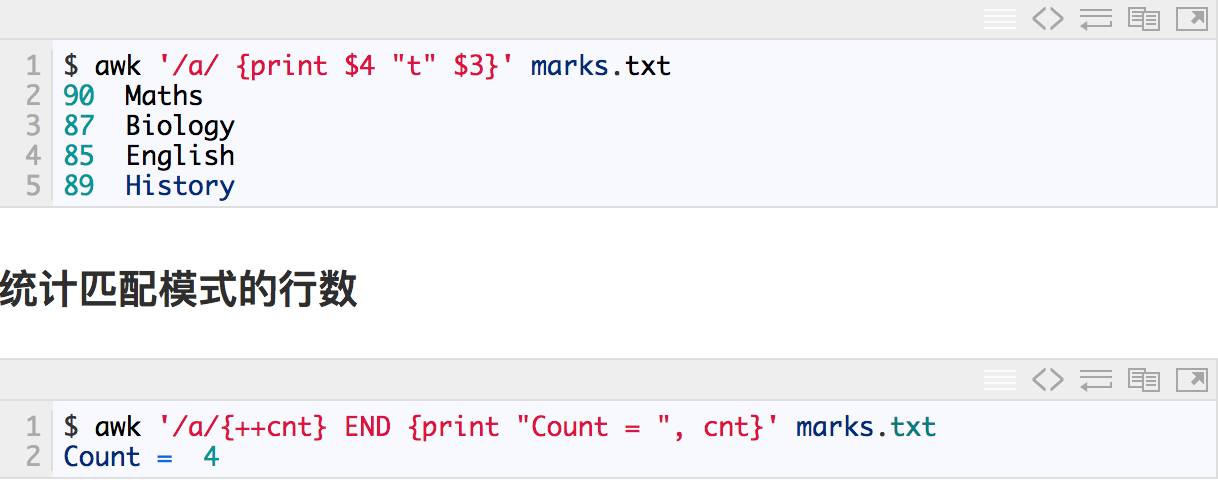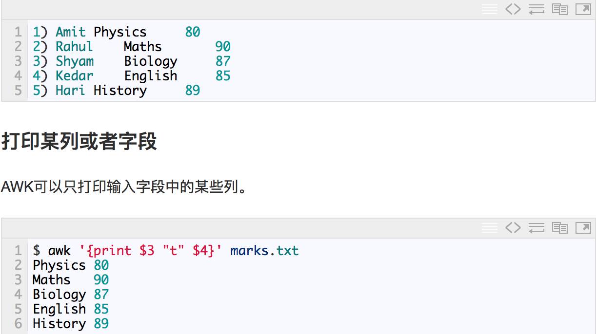 awk中同时提供了print和printf两种打印输出的函数。