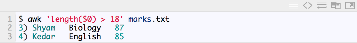 awk '{pattern + action}' {filenames}