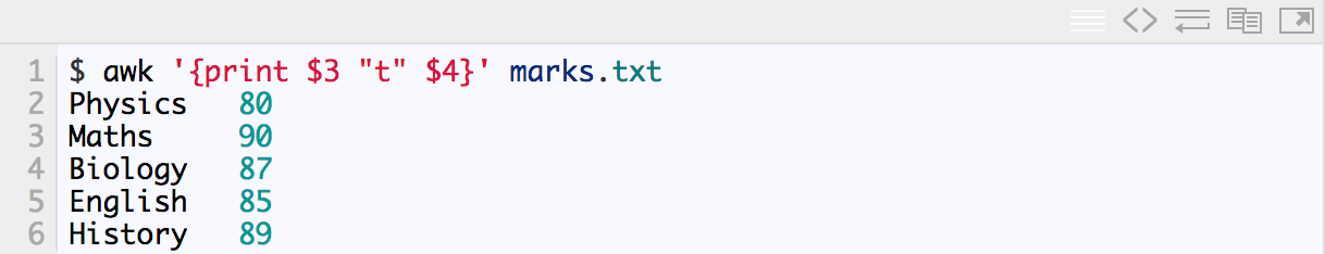 #cat /etc/passwd |awk -F ':' '{print $1"\t"$7}'