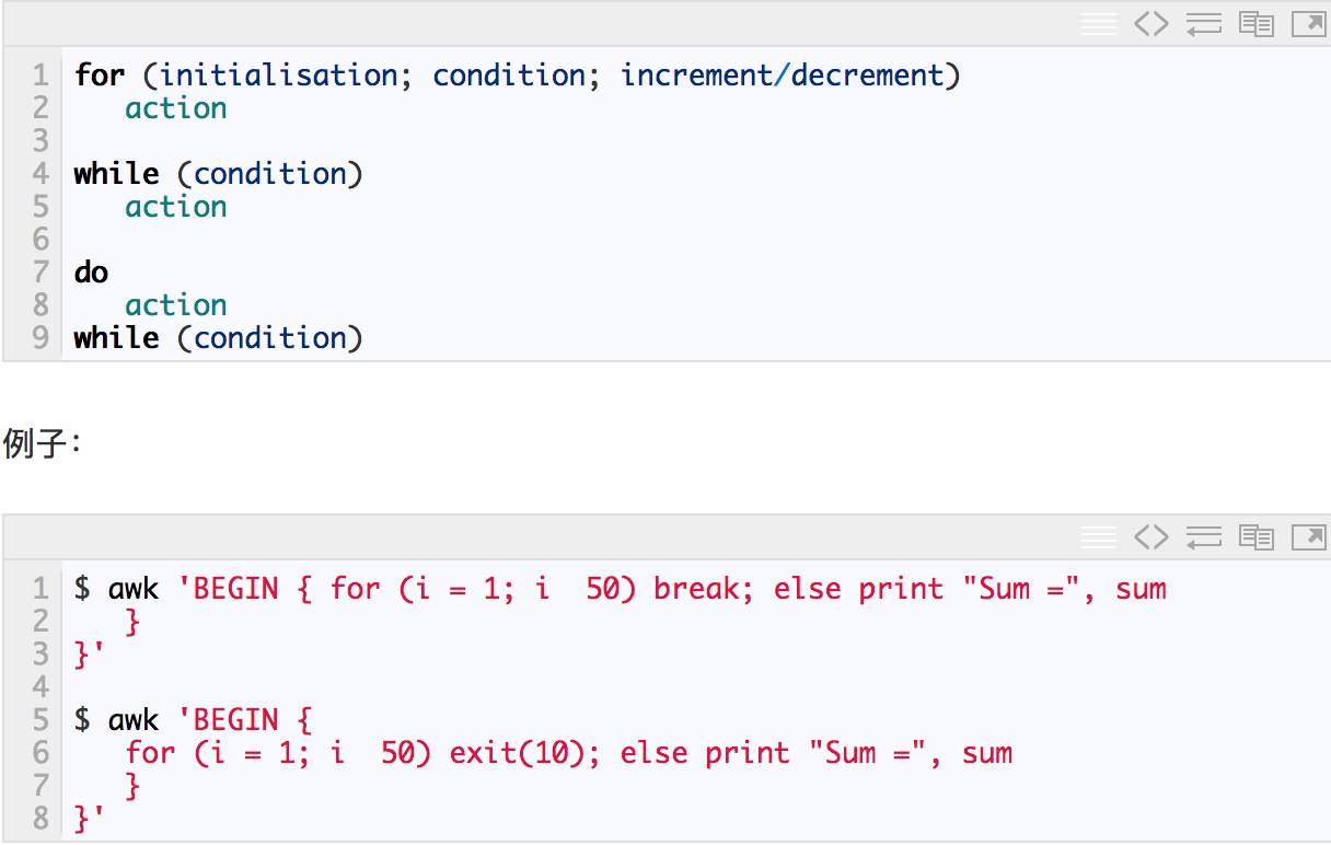 循环操作与其他C系语言一样,主要包括 for,while,do...while,break,continue语句,当然,还有一个 exit语句用于退出脚本执行。