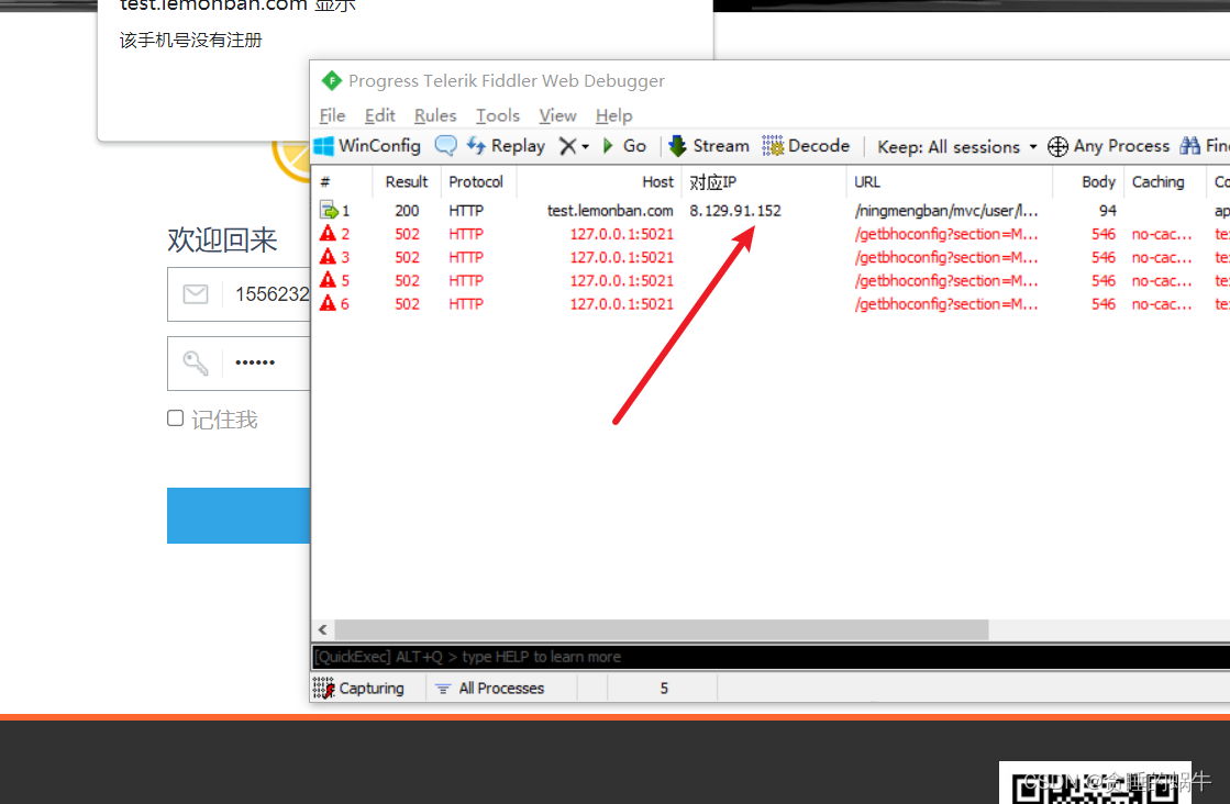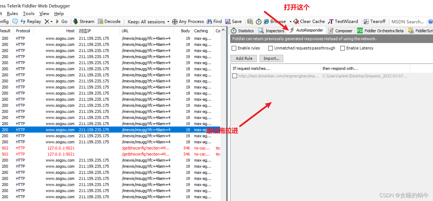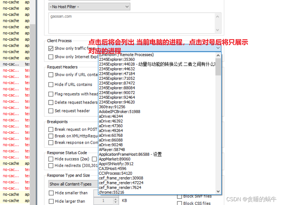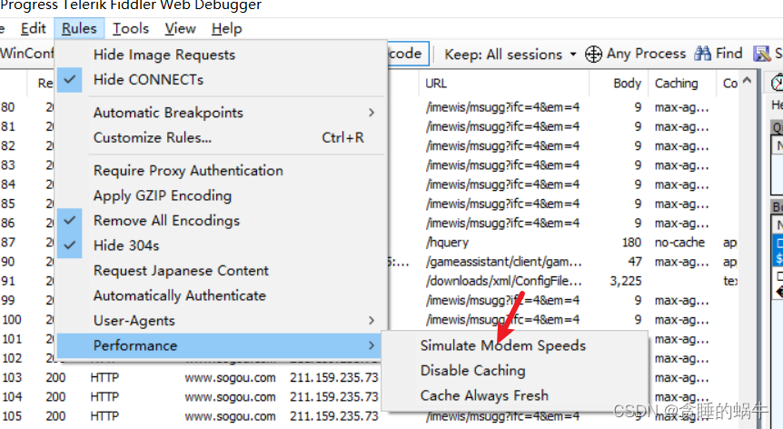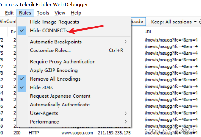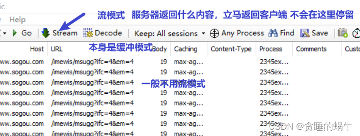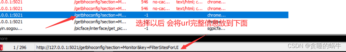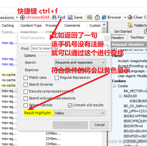 当您键入 输入内容时 时,Fiddler Classic 将突出显示 URL 包含您输入内容 的会话。按 Enter 将焦点设置到选定的匹配项。