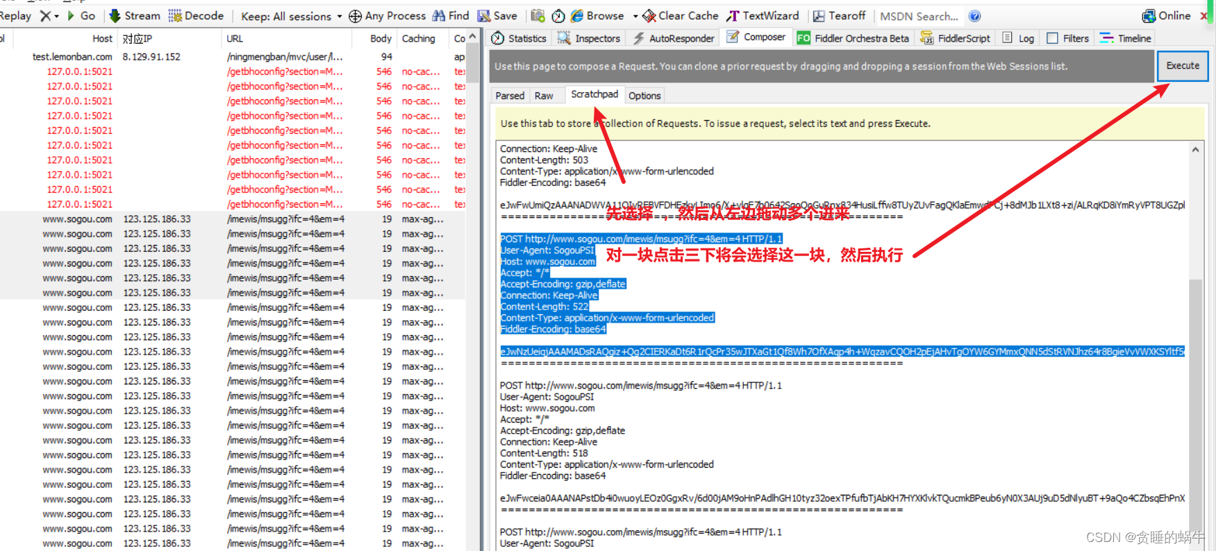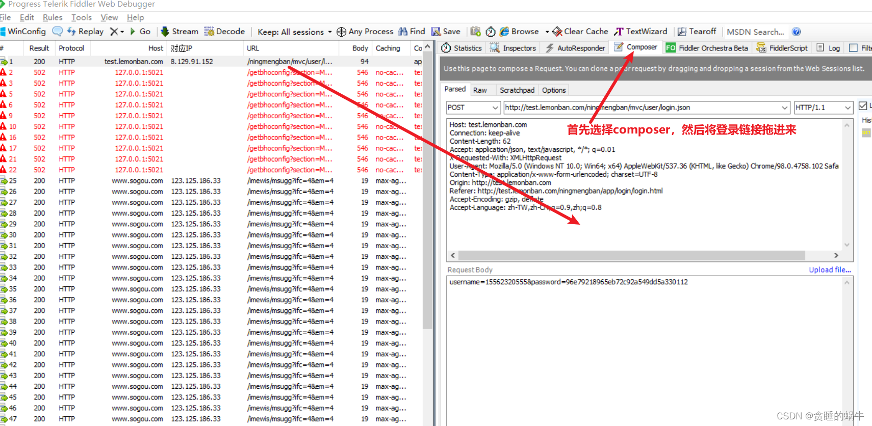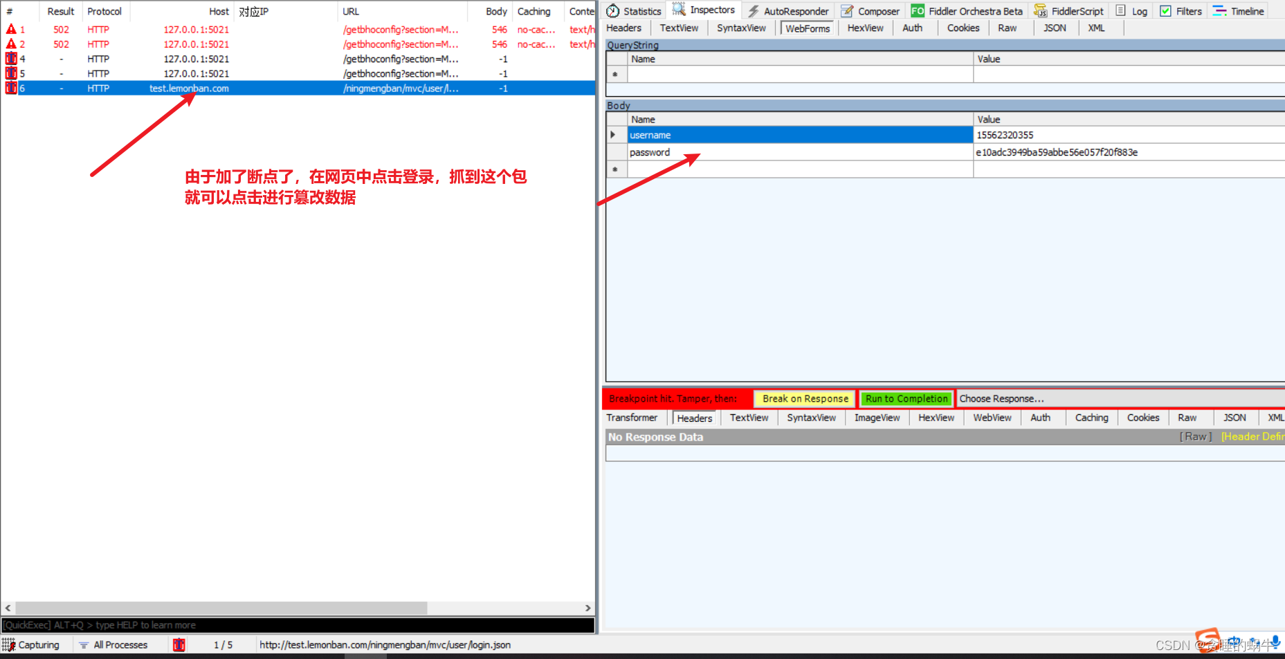 当您键入 输入内容时 时,Fiddler Classic 将突出显示 URL 包含您输入内容 的会话。按 Enter 将焦点设置到选定的匹配项。