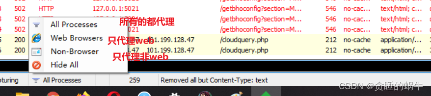 隐藏所有会话,除了 Content-Type 标头包含指定字符串的会话。