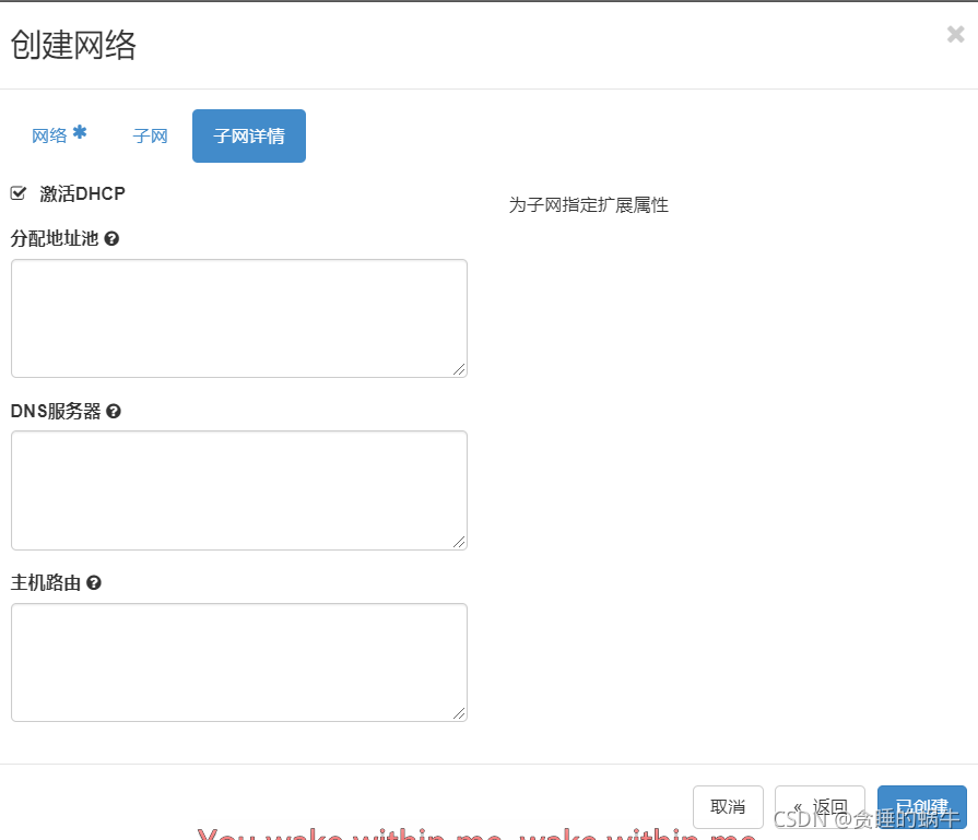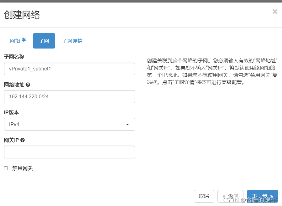 创建子网,如果不设置网关,会默认为网络的第一个ip地址
