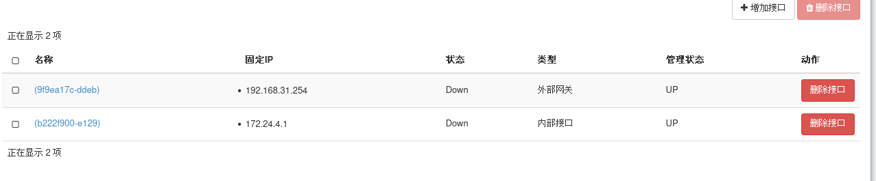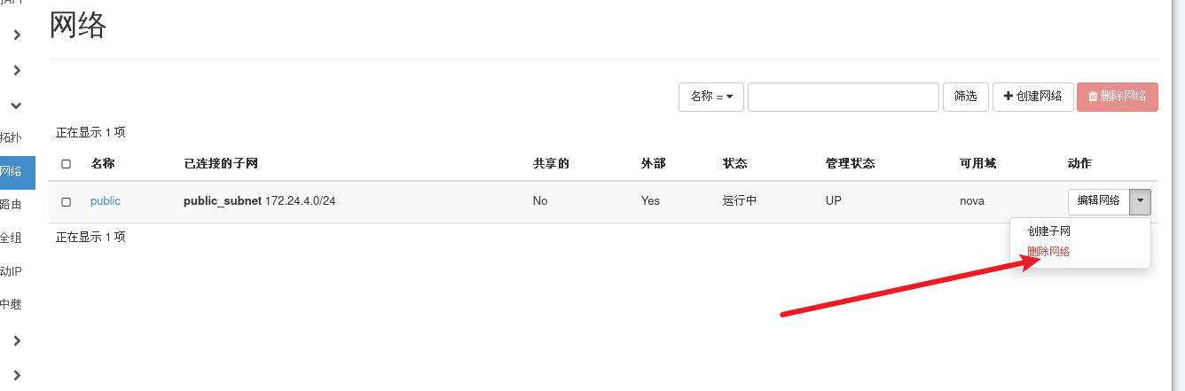 注意想要删除网络,需要在路由里面将对应接口删掉,然后再删除网络。