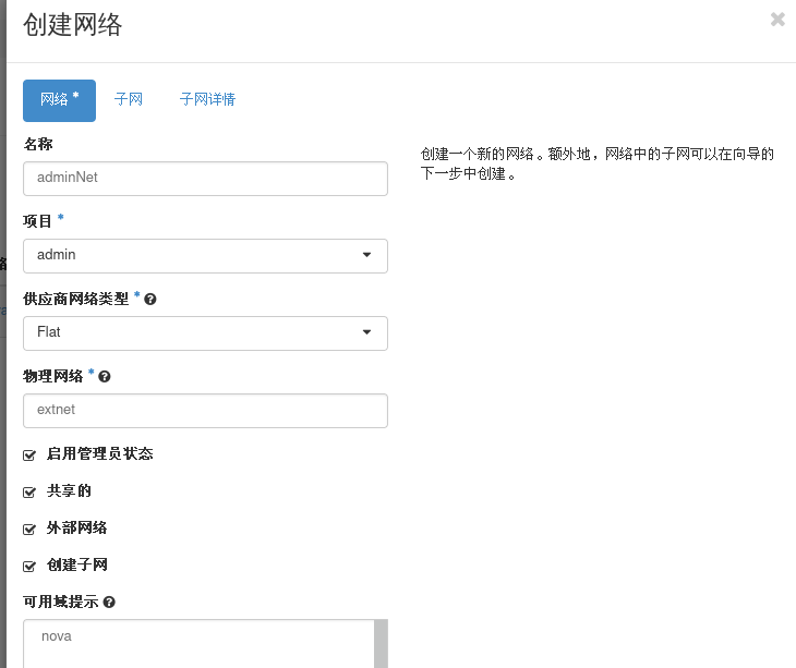 定义的外部网络extnet被映射到了OVS网桥,即Openstack实例将通过网桥br-ex访问外部网络,