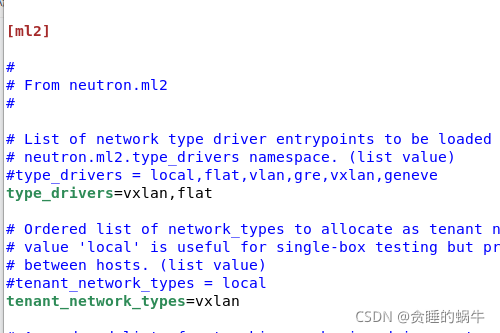 网络代理插件的配置文件位于/etc/neutron/plugins/ml2/ml2_conf.ini