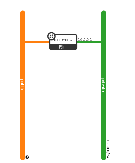 查看网络拓扑,可以看到路由器将内外网连接起来