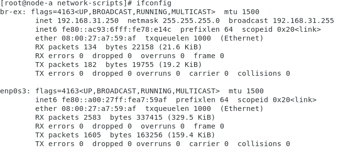 # systemctl restart neutron-l3-agent.service neutron-openvswitch-agent.service