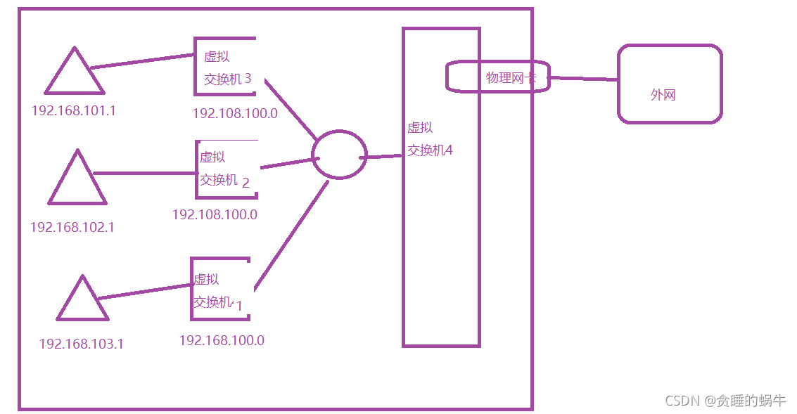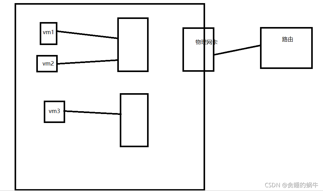 没有绑定任何物理网卡,同一个local网络的虚拟机连接在相同的虚拟交换机上,实例之间可以通信,不同local的不能进行通信。下图vm1和vm2可以通信,vm3不能与vm1或者vm2通信