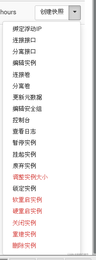 在实例菜单中有多重操作指令,常用的是创建快照、删除、关闭实例等等