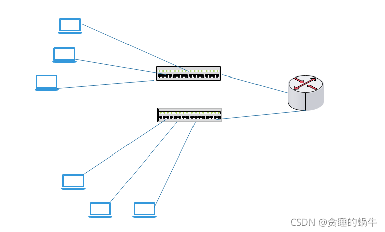 - 主机——交换机——三层交换机——交换机——主机