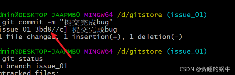 某个分支修改bug且提交完成后,会生成一个commit的id