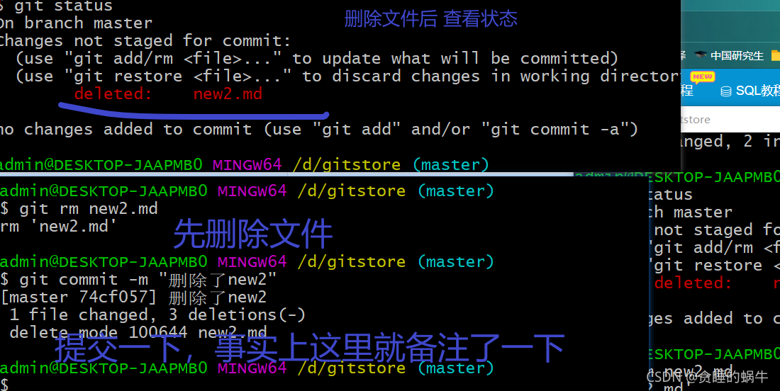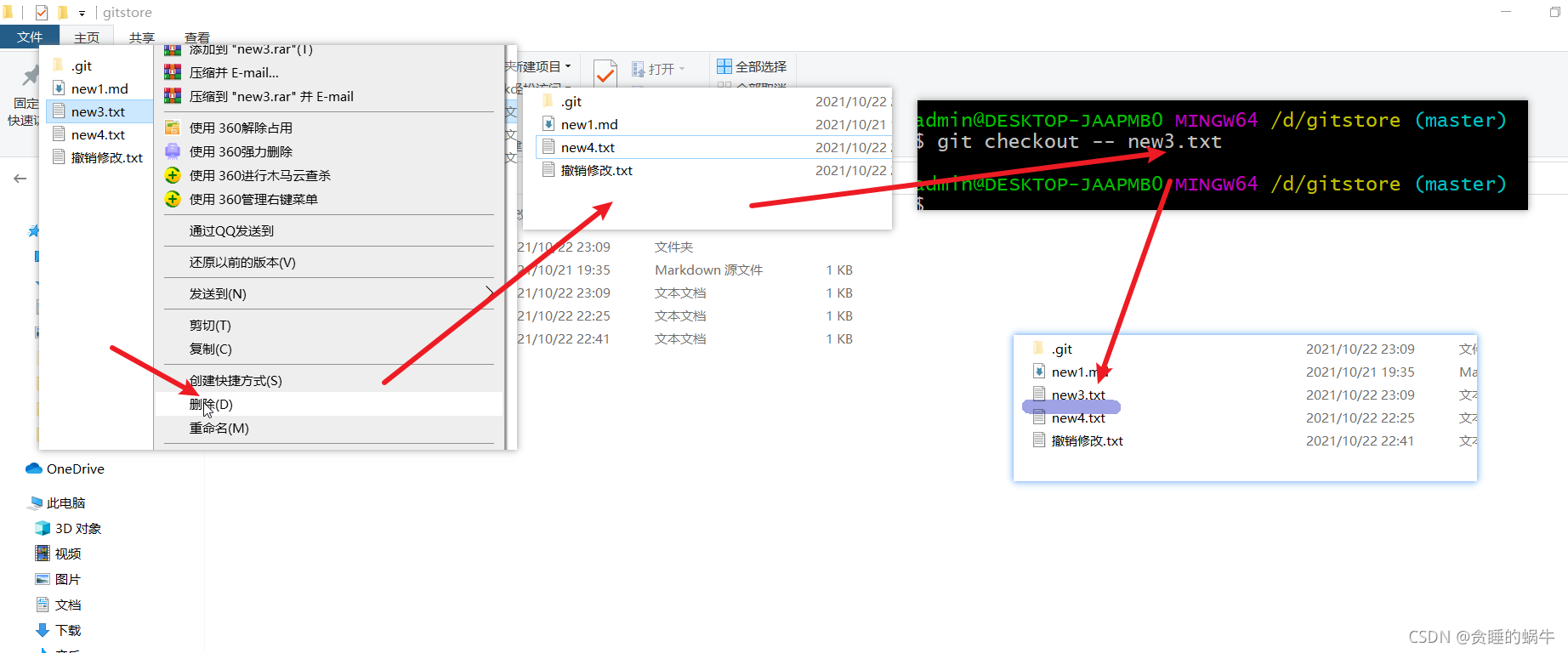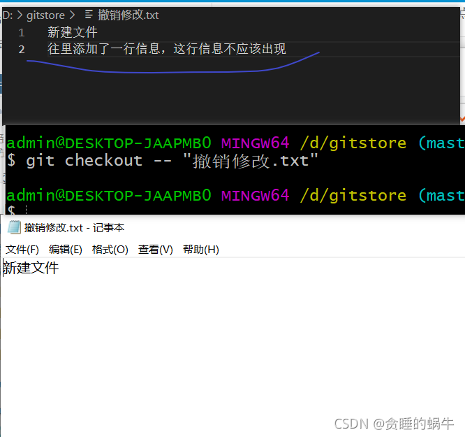 使用 git check out -- 文件名 进行撤销到与版本库一样的内容(--与文件有空格)