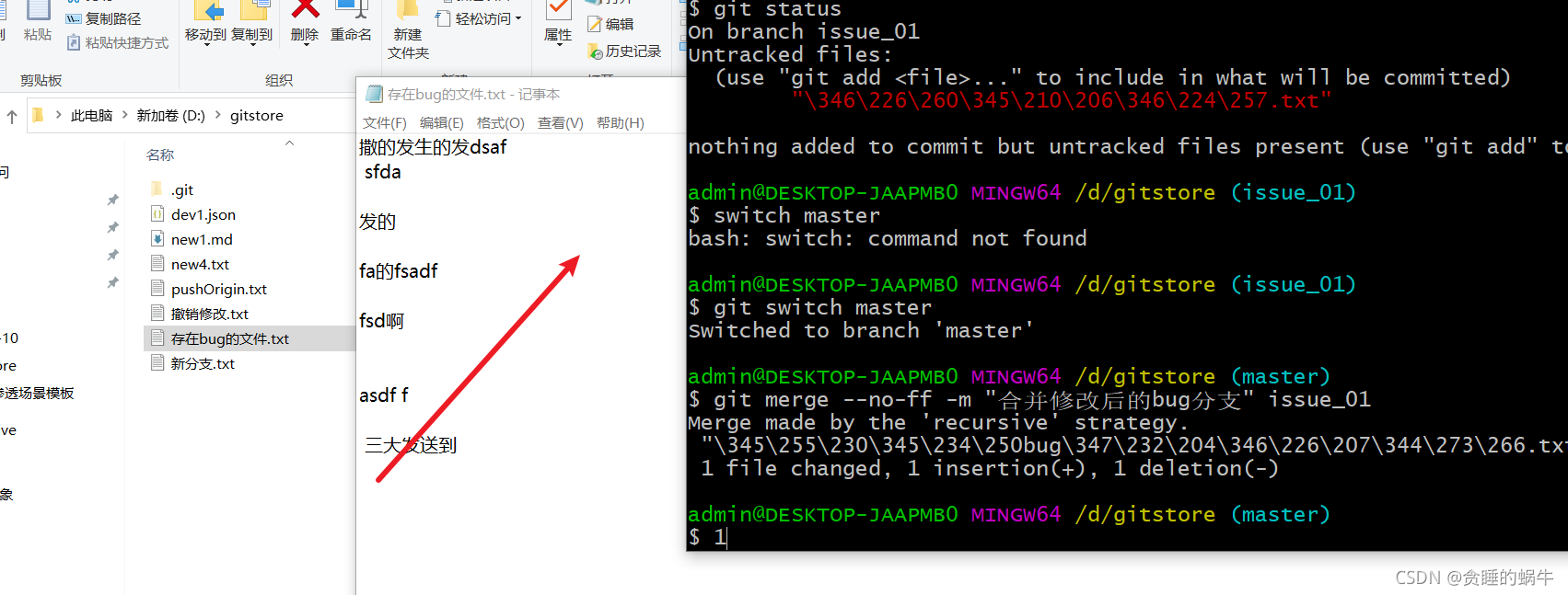 在master上新建一个存在bug的文件,将其加入版本库里面