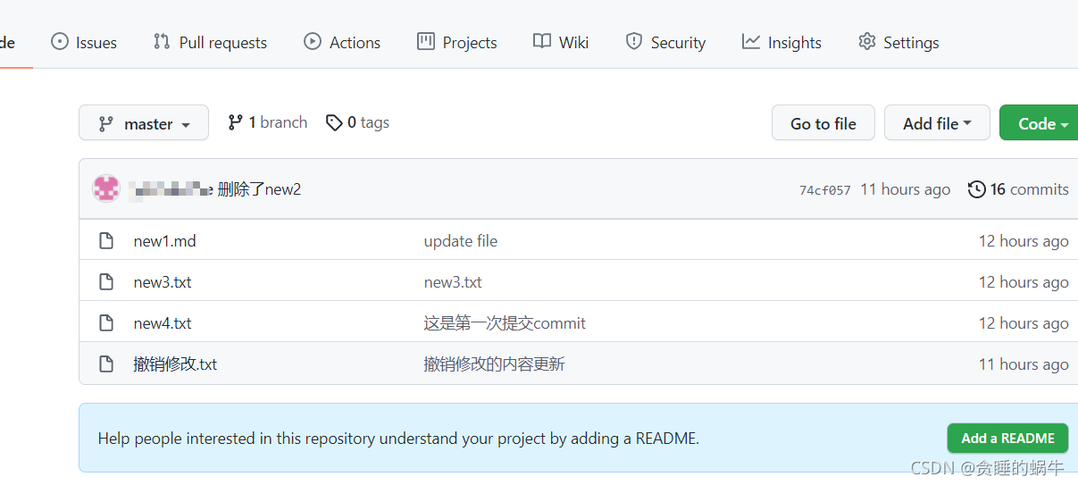 新建了一个文件,第一次新建了文件,第二次增加了aaa,第三次增加了bbb,第四次增加了cccc