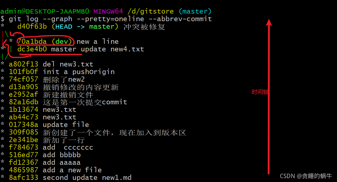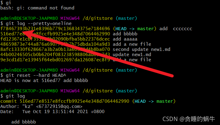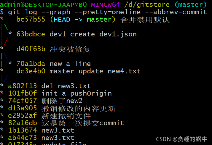 前面一大串是版本号,为什么这么长,就是为了防止冲突,为了独一无二。后面是commit的备注