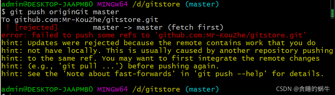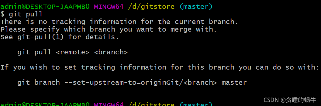 拉取远程库的项目 git pull (第一次git pull会报错,可以按照它提示的操作进行)