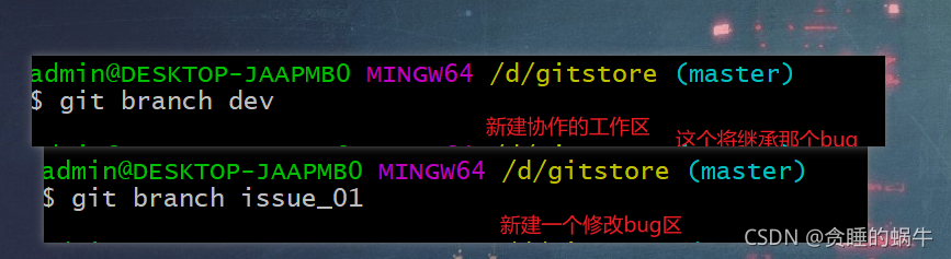 在这里我发现一个问题,如果一个工作区发生了修改还没有提交,那么在此基础上以本分支新建一个分支,那么分支将会继承主分支的工作区,暂存区和版本区