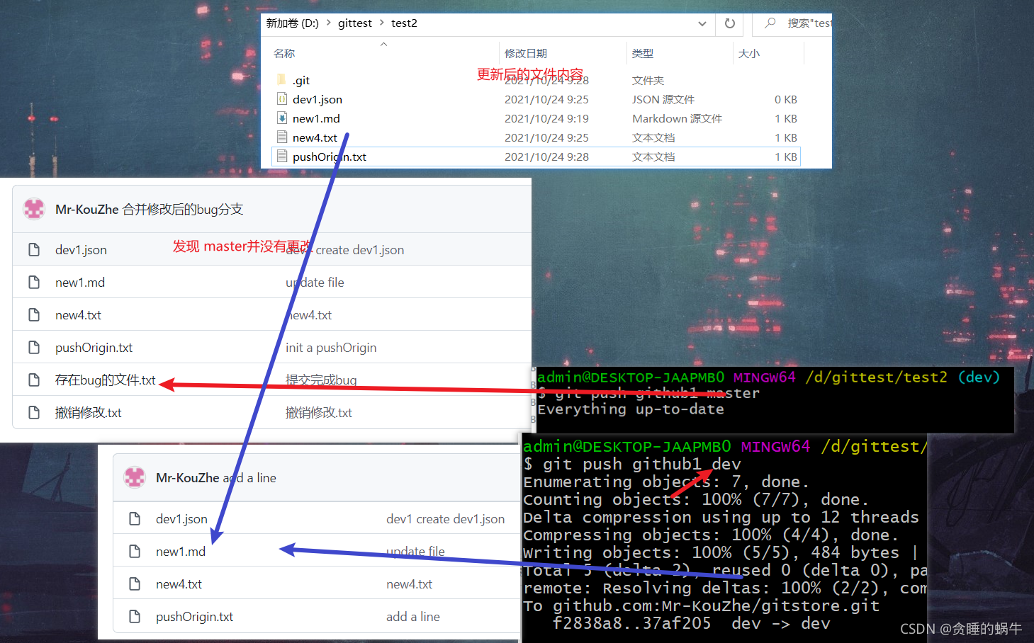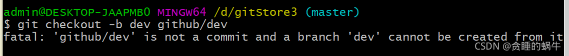 创建与谁的关联就只能更新谁的,比如下面dev只关联了远程库的dev,想要更新master发现更新不了(错误)